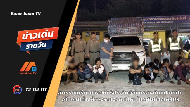 ที่จังหวัดสุพรรณบุรี เมื่อเวลา 22.00 น.วันที่ 9 ม.ค.2567 พ.ต.ต. โจ เสาร์ประโคน สารวัตรสถานีตำรวจทางหลวง 6 กองกำกับการ 2 กองบังคับการตำรวจทางหลวง ได้เดินทางมาสอบสวนปากคำผู้ต้องหาต่างด้าวชาวเมียนมาร์ ร่วมกับ พ.ต.ท. สุธีรฐ์ ธีระสวัสดิ์ สารวัตร ตม.สุพรรณบุรี ร.ต.อ.สันติ พงษ์สุวรรณ รอง สว.(สส.) ตม.จว.สุพรรณบุรี หลังจาก ด.ต.สุทัศน์ ทองไทย หัวหน้าหน่วยบริการประชาชนตำรวจทางหลวงศรีประจันต์ พร้อมกำลังตำรวจทางหลวงศรีประจันต์ สกัดจับได้ผู้ต้องลักลอบขนแรงงานต่างด้าวได้ 2 ราย ขณะออกตรวจที่ โดยรายขณะกำลังตรวจพื้นที่ไปตามถนนเลียบคลองชลประทานสาย บ้านทุ่งแฝก-ดอนปรู หมู่ 4 ตำบลดอนปรู อำเภอศรีประจันต์ ได้ผู้ต้องหา 15 คน และรายที่ 2 จับได้ที่ถนนสาย 340 ศรีประจันต์ – สุพรรณบุรี ขาเข้าสุพรรณบุรี โดยจับได้เลยแยกไฟแดงศรีประจันต์ได้ผู้ต้องหา 10 คน
