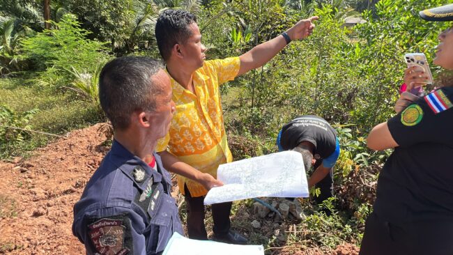 วันที่ 9 มกราคม 2567 เวลา -16.00 น. พ.อ.ดุสิต เกษรแก้ว หัวหน้าชุดตรวจสอบและแก้ไขปัญหาการบุกรุกที่ดินของรัฐ การทำลายทรัพยากรธรรมชาติและสิ่งแวดล้อมในพื้นที่กองทัพภาคที่ 4 พร้อม นายทวีป ไทยสวีปลัดอำเภอเมืองชุมพร พร้อมคณะเจ้าหน้าที่หน่วยป้องกันรักษาป่า ชพ.2(เสียบญวน)เจ้าหน้าที่ชุดปฏิบัติการพิเศษป่าไม้ชุมพร เจ้าหน้าที่ศูนย์ป่าไม้ชุมพร เจ้าหน้าที่ฝ่ายปกครองอำเภอเมืองชุมพร เจ้าหน้าที่ กอ.รมน.ภาค 4 ส่วนหน้า เจ้าหน้าที่ที่ดินจังหวัดชุมพร เจ้าหน้าที่อุตสาหกรรมจังหวัดชุมพร ผู้ใหญ่บ้าน หมู่ที่ 6 ตำบลปากน้ำ อำเภอเมืองชุมพร จังหวัดชุมพร