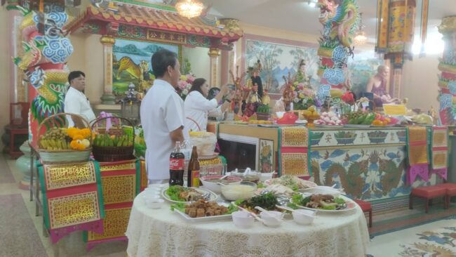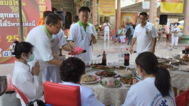 สุดฮือฮา พุทธสมาคมสัจจะธรรมสงเคราะห์ฯ โรงเจบึงไร่ 1 สั่งโต๊ะจีน 72 ตัว มาจัดเลี้ยงวันเกิดให้องค์เทพเจ้าคนแห่ส่องเลขหางประทัดจุดถวายนำไปเสี่ยงโชค