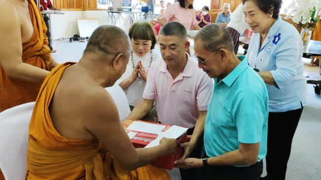 คณะสงฆ์สุพรรณบุรี สาธุชน ศิษยานุศิษย์ คหบดี นักธุรกิจ ผู้นำชุมชนผู้นำท้องถิ่น ขนอาหารคาวหวานร่วมทำบุญครบรอบวันมรณภาพหลวงพ่อโบ้ยวัดมะนาว 59 ปี