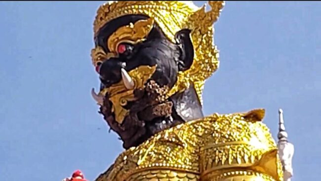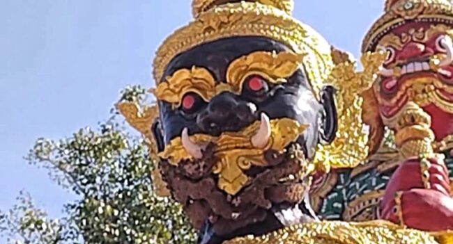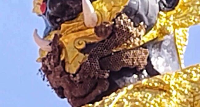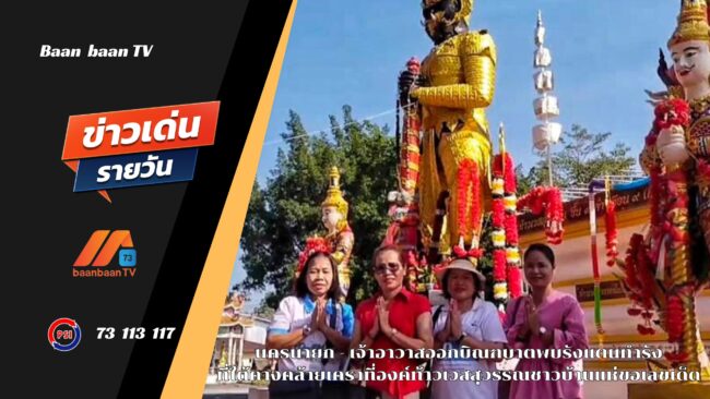นครนายก – เจ้าอาวาสออกบิณฑบาตพบรังแตนทำรังที่ใต้คางคล้ายเคราที่องค์ท้าวเวสสุวรรณชาวบ้านแห่ขอเลขเด็ด
