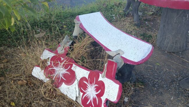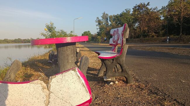 “ศรีสะเกษ” ชาวบ้านสุดทนแจ้งตำรวจล่าตัววัยคะนองทุบโต๊ะเก้าอี้สวนสาธารณะพังยับ