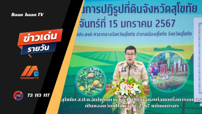 สุโขทัย ส.ป.ก.จัดโครงการ Kick Off พิธีมอบโฉนดเพื่อการเกษตร เป็นของขวัญปีใหม่ พ.ศ. 2567 แก่เกษตรกร