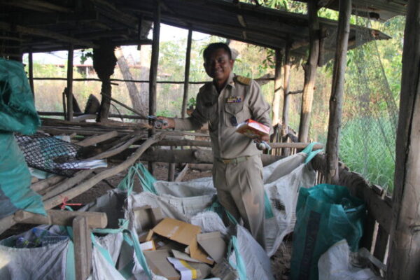 ‘ทวี ทองนัด’ ผอ.โรงเรียนบ้านตะโกรี อ.พลับพลาชัย จ.บุรีรัมย์ น้อมนำหลักปรัชญาของเศรษฐกิจพอเพียง มาใช้ในการจัดการขยะ โดยการคัดแยกขยะตั้งแต่ต้นทาง รักษ์โลก รักษาสิ่งแวดล้อม เพื่อสิ่งแวดล้อมที่ดี ลดภาวะโลกร้อน