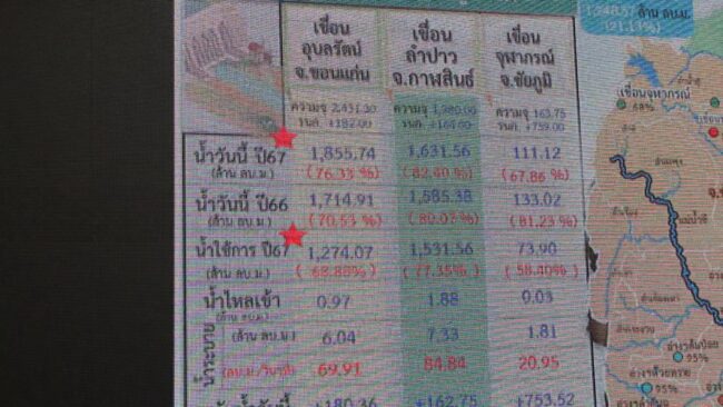 “สถานการณ์น้ำในขอนแก่นซึ่งมีเขื่อนอุบลรัตน์เป็นเขื่อนขนาดใหญ่มีน้ำอยู่ 76% หรือ 1,800 ล้าน ลบ.ม. ส่วนเขื่อนระบายน้ำที่เกี่ยวเนื่อง ไม่ว่าจะเป็นเขื่อนชนบทและเขื่อนมหาสารคามมีน้ำ 42.7 ลบ.ม. หรือ 107% ถือว่าน้ำอยู่ในเกณฑ์ที่ดีมาก ส่วนปริมาณน้ำต้นทุนในขอนแก่นจากแหล่งเก็บกักน้ำทุกแหล่งรวมกันทุกที่จากความจุเก็บกัก 2,934 ล้าน ลบ.ม. ประมาณ 77% หรือปริมาณน้ำอยู่ 2,255 ล้าน ลบ.ม. ประมาณ 76% น้ำใช้การ 1,653 ล้าน ลบ.ม. ประมาณ 71% ทุกกิจกรรมในจังหวัดขอนแก่นไม่มีความเสี่ยงขาดแคลนน้ำอย่างแน่นอนและพร้อมสนับสนุนการปะปาทุกแหล่งที่อยู่ในลำน้ำพอง ลำน้ำชีที่กรมชลประทานดูแลได้อย่างเพียงพอ”