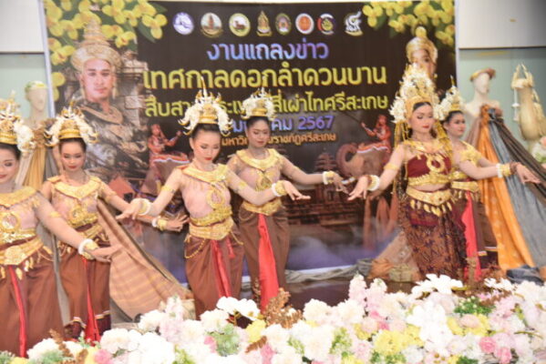 ผศ.ดร.ประกาศิต อานุภาพแสนยากร อธิการบดี มหาวิทยาลัยราชภัฏศรีสะเกษ กล่าวว่า มหาวิทยาลัยราชภัฏศรีสะเกษ ได้รับมอบหมายให้จัดหานักแสดง เขียนบทการแสดงแสง สี เสียง ศรีพฤทเธศวร ตำนานการสร้างเมืองดอกลำดวน ในปีนี้การแสดงจะมีชื่อเรื่องว่า “อารยธรรมแห่งศรัทธา มนตรา ศรีพฤทเธศวร ตอน รอยบรรพชน” จะยิ่งใหญ่อลังการ เพื่อบอกเล่ากล่าวขานถึงประวัติศาสตร์โบราณของจังหวัดศรีสะเกษ แสดงให้เห็นถึงอารยธรรมอันยิ่งใหญ่และประวัติศาสตร์อันทรงคุณค่าที่เคยเจริญรุ่งเรืองมานับ 1,000 ปี และวีระกรรมของบรรพชนคนศรีสะเกษที่เคยร่วมสร้างบ้านแปลงเมืองร่วมกับกษัตริย์ขอมโบราณ โดยเฉพาะพระเจ้าชัยวรมันที่ 2 พระเจ้าสุริยวรมันที่ 1 และพระเจ้าชัยวรมันที่ 7 จนเป็นเรื่องราวทางประวัติศาสตร์ที่ปรากฏในจารึกและเป็นอารยธรรมอันยิ่งใหญ่ ที่เชื่อมโยงความเป็นเมืองศรีสะเกษจากอดีตถึงปัจจุบัน จึงขอเชิญชวนชาวศรีสะเกษ และนักท่องเที่ยวชาวไทย ไปเที่ยวชมงานเทศกาลดอกลำดวนบานสืบสานประเพณีสี่เผ่าไทศรีสะเกษ ในระหว่างวันที่ 6-10 มีนาคม 2567 ที่สวนสมเด็จพระศรีนครินทร์ศรีสะเกษ อ.เมืองศรีสะเกษ ด้วย