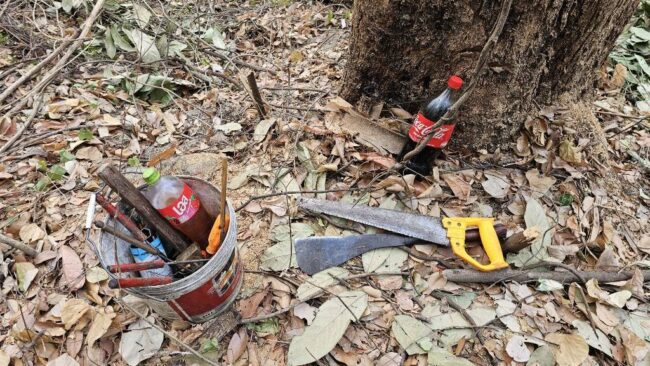 เมื่อเวลา12.30น.(30มกราคม2567)ใต้การอำนวยการของนายธวัชชัย ศรีทอง ผู้ว่าราชการจังหวัดชลบุรี โดยนายนพรัตน์ ศรีพรหม นายอำเภอศรีราชา ได้มอบหมายให้นางสาวชิดชนก ไพบูลย์เวชสวัสดิ์ ปลัดอำเภอศรีราชา พร้อมสมาชิกกองอาสารักษาดินแดนร้อย.อส.อ.ศรีราชา ที่ 2 และสมาชิกชมรมราชสีห์พิทักษ์ราษฎร์ ร่วมหน่วยป้องกันรักษาป่า ที่ชบ.1(บางละมุง) และนายปพนพัชญ์ ณัฐดุลพานิช ผู้ใหญ่บ้าน หมู่ที่ 4 ตำบลหนองขาม อำเภอศรีราชา ลงพื้นที่บุกจับการลักลอบตัดไม้ประดู่ บริเวณในซอยเขาไผ่ หมู่ที่ 4 ตำบลหนองขาม อำเภอศรีราชา จังหวัดชลบุรี โดยทางศูนย์ดำรงธรรมอำเภอศรีราชา ได้รับแจ้งจากประชาชนที่ว่ามีการลักลอบตัดไม้ ในพื้นที่เขตป่าไม้ในซอยเขาไผ่ พื้นที่หมู่4 ตำบลหนองขาม หลังรับแจ้งจึงประสานหน่วยป้องกันรักษาป่า ที่ชบ.1(บางละมุง) นำกำลังออกไปตรวจสอบพบว่ามีการลักลอบตัดไม้หวงห้ามอยู่ จึงแสดงตัวจับกุมผู้ต้องหาจำนวน2 คนวิ่งหลบหนีไปได้เพราะอาศัยความชำนานในพื้นที่ โดย พบของกลาง ได้แก่ ต้นประดู่ที่ถูกตัด, ท่อนไม้ประดู่, รถกระบะยี่ห้อมิตซูบิชิ สีขาว ทะเบียน ผบ- 9377 ชลบุรี เลื่อยลันดา มีดพร้า ค้อน ตะไบ ไขควง น้ำมันเครื่องยนต์ ตลับเมตร หัวเทียนเครื่องยนต์ เสื้อเชิ๊ตแขนยาว หมวก กระติกน้ำแข็ง ภาชนะ พร้อมด้วยสเบียงอาหารและเครื่องดื่ม ผู้ต้องหาจำนวน 2 คนไหวตัวทันวิ่งหลบหนีการจับกุมเจ้าหน้าที่ไปได้ จึงไม่สามารถจับกุมผู้ต้องหาได้ ทางอำเภอศรีราชาจึงประสานหน่วยป้องกันรักษาป่าที่ชบ.1(บางละมุง) ตรวจสอบพบท่อนไม้ประดู่จำนวน 19 ท่อน ปริมาตร 1.41 ลูกบาศก์เมตร มูลค่า 49,400 บาทและนำกำลังขนย้ายไม้ประดู่ของกลางไปสถานีตำรวจภูธรหนองขามส่งพนักงานสอบสวน เพื่อดำเนินดคีตามกฏหมายต่อไป