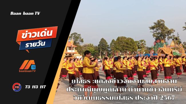 ยโสธร :แถลงข่าวจัดงานสืบสานงานประเพณีบุญคูณลาน ตำนานข้าวอินทรีย์ วิถีวัฒนธรรมยโสธร ประจำปี 2567 จัดวันที่ 6-9 กุมภาพันธ์ 2567 ที่หน้าอำเภอกุดชุม จังหวัดยโสธร: