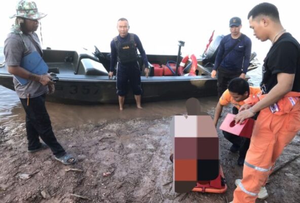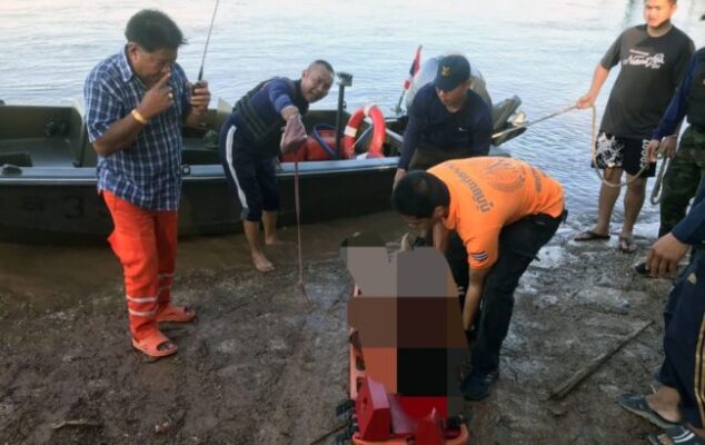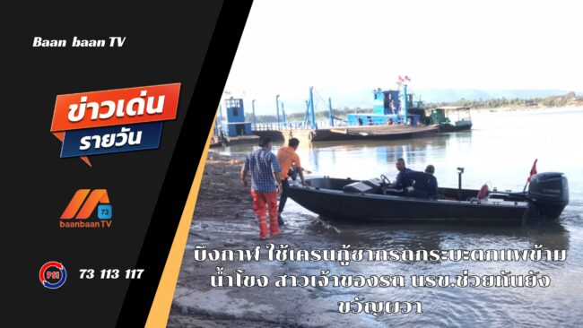 บึงกาฬ ใช้เครนกู้ซากรถกระบะตกแพข้ามน้ำโขง สาวเจ้าของรถ นรข.ช่วยทันยังขวัญผวา