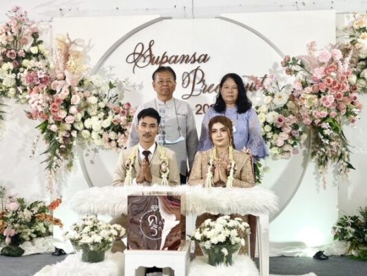 พิธีงานแต่งงาน เช้าแบบไทยเรียบง่ายในพิธีมงคลสมรสระหว่าง นางสาวสุพรรษา ขําวงค์(ฟ้า) นายพีรยุทธ กรองแก้ว(ฟุต)