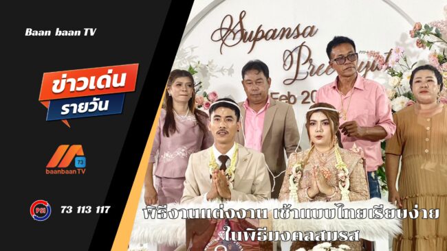 พิธีงานแต่งงาน เช้าแบบไทยเรียบง่ายในพิธีมงคลสมรสระหว่าง นางสาวสุพรรษา ขําวงค์(ฟ้า) นายพีรยุทธ กรองแก้ว(ฟุต)