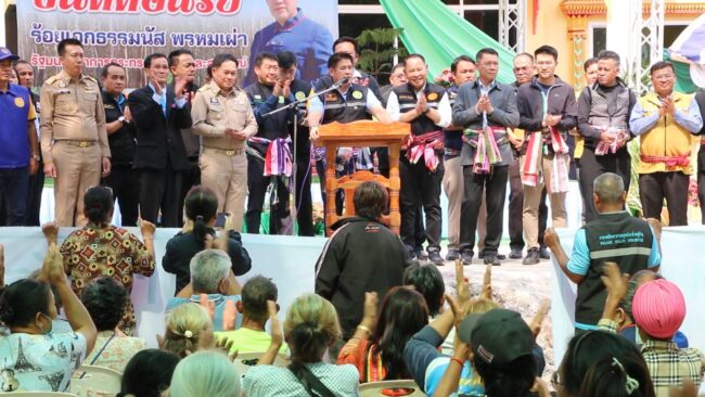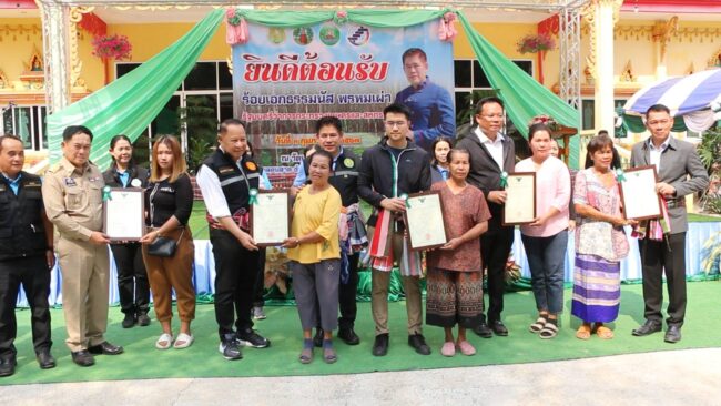 ท่ามกลาง บรรยากาศมีประชาชนให้การต้อนรับพร้อมกับถ่ายภาพร่วมกับ ร..ธรรมนัส อย่างอบอุ่นและเป็นกันเอง ก่อนจะพูดคุยทักทายและได้มอบโฉนดที่ดินส.ป.ก.จำนวน 5 โฉนดให้กับเกษตรกรทั้ง 5 ครอบครัวในพื้นที่ตำบลหนองกุงใหญ่ อ.กระนวน จ.ขอนแก่น และประกาศชัดบนเวทีว่า ในปี 2567 ปัญหาเรื่องที่ดินทำกินจะต้องหมดไป และจะต้องเป็นโฉนดให้กับพี่น้องประชาชนได้ทำมาหากินอย่างถูกต้องตามกฎหมาย ไม่เป็นที่ดินเถื่อน