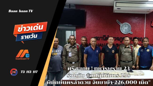 ศรีสะเกษ ! ทหารพราน 23 ร่วมกับ ชุดปฏิบัติการ 238 พิทักษ์นครลำดวน จับยาบ้า 226,000 เม็ด”