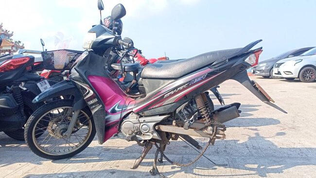 ผู้สื่อข่าวลงพื้นที่ตรวจสอบบริเวณปลายสะพานท่าเทียบเรือเกาะลอย พบรถ จักรยานต์ยี่ห้อ yamaha spark 115 i สีดำชมพูหมายเลขทะเบียน 1กด 884 ชลบุรี จอดอยู่ที่จอดรถแต่กลับพบว่า ล้อหลังได้หายไปทั้งชุด โดยสภาพรถนั้นคนร้าย ได้ตั้งขาตั้งคู่ก่อนทำการถอดล้อหลังรถออกไป