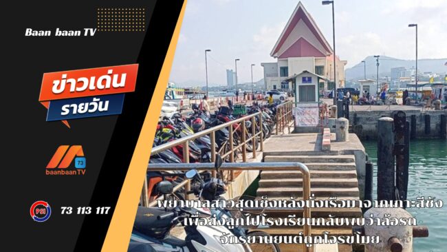 จากการสอบถาม นาวสาวจริยา ประทุมเดช เปิดเผยว่า ตนเองนั้นได้จอดรถจักรยานยนต์ไว้ที่สะพานท่าเทียบเรือเกาะลอยก่อนนั่งเรือไปเกาะสีชัง ในช่วงเย็นและช่วงเช้าที่ผ่านมานั้นจนเหนื่อยได้นั่งเรือจากเกาะสีชังมาที่ฝั่งอำเภอศรีราชาเพื่อจะทำการส่งลูกไปโรงเรียนแต่พอมาถึงที่รถนั้นปรากฏว่าล้อหลังของตนในนั้นได้ถูกโจรลักขโมยไป ทำให้ตนเองนั้นเดือดร้อนเป็นอย่างมากเนื่องจากต้องใช้รถประจำไว้ส่งลูกไปโรงเรียนโดยช่วงเย็นของวันนี้ได้เดินทางมาแจ้งเจ้าหน้าที่ตำรวจสภศรีราชาโดยมี ว่าที่ ร.ต.ท. วิเชียร สิมาจารย์ ได้รับคำแจ้งความใว้แล้วพร้อมลงบันทึกประจำวันก็ในนั้นอยากฝากถึงเจ้าหน้าที่หน่วยงานที่เกี่ยวข้องอยากให้มีไฟส่องสว่างและมีกล้องวงจรปิด ตรงบริเวณจุดจอดรถ