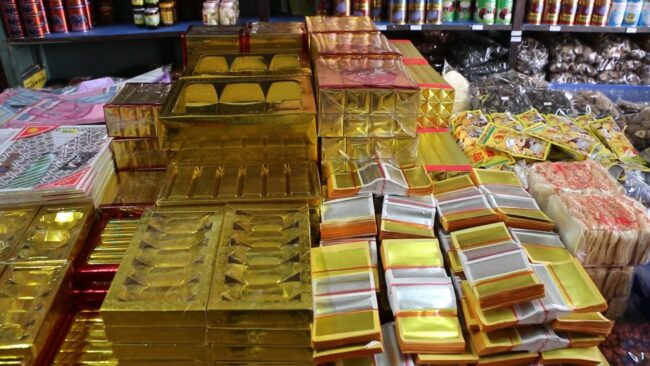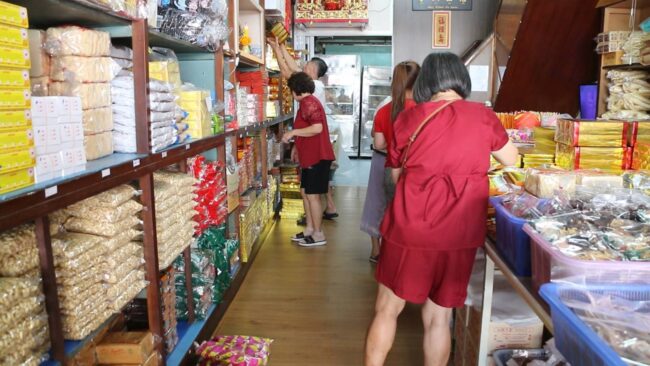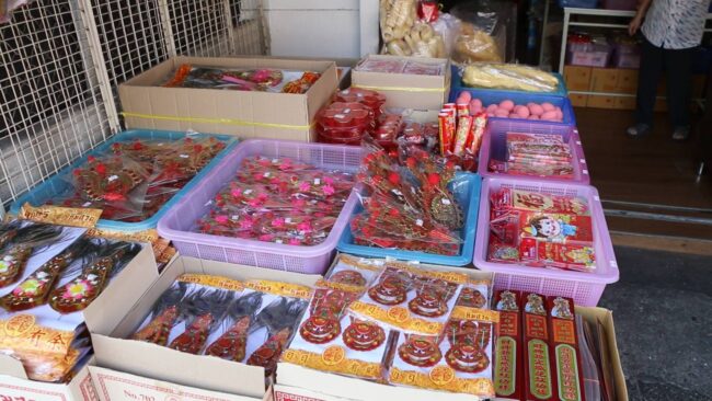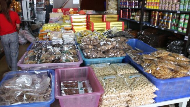 นายศักรินทร์ ทัศนวัฒน์ อายุ 40 ปี เจ้าของร้านกิมไทย กล่าวว่า บรรยากาศที่ร้านเริ่มมีลูกค้าเข้ามาจับจ่ายบ้างแล้วในช่วงนี้ ในปีนี้สินค้าบางอย่างมีการขยับราคาแรง หน่อไม้จีนแห้ง ตรุษจีนปีที่แล้ว กก.ละ 500 บาท ปีนี้อยู่ที่ กก.ละ 800-900 บาท ขึ้นมา กก.ละ 400 บาท ขนมจันอับขึ้นมาอีกถุงละ 10 บาท กระดาษไหว้ราคาปกติ ขนมเปี๊ยะ ปีนี้ลูกค้าเงียบกว่าปีที่ผ่านมา