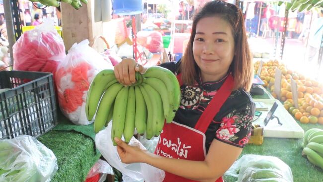 น.ส.บานชื่น โคตะมะ อายุ 44 ปี แม่ค้าผลไม้สด กล่าวว่า ปีนี้ราคาผลไม้ชนิดต่างๆราคาไม่แพงมากแต่กล้วยหอมทองเริ่มขยับราคาสูงขึ้นเฉลี่ยหวีละ30 บาท ซึ่งยอมรับว่าปีนี้ราคากล้วยหอมแพงกว่าทุกปีที่ผ่านมา จำได้ว่าปีที่แล้วเริ่มต้นหวีละ 80 บาท แต่ปีนี้ราคาเริ่มต้นหวีละ 110 -180 บาท ตั้งแต่ขายกล้วยหอมมาราคายังไม่เคยแรงขนาดเท่าปีนี้มาก่อน
