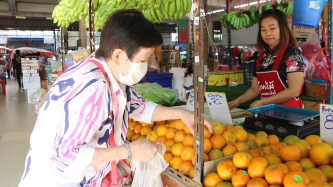 “ขนาดยังไม่ถึงวันจ่ายจริงราคากล้วยหอมทองแพงมาก ส่วนราคาผลไม้ชนิดอื่นๆที่ใช้ไหว้ ยังปกติไม่ว่าจะเป็นส้มสายน้ำผึ้งเริ่มต้น กก.ละ 60-80 บาท แอปเปิ้ลเริ่มต้นลูกละ 10-35 บาท ซึ่งตลอดตั้งแต่ช่วงเช้าเริ่มมีลูกค้าออกมาเริ่มซื้ออย่างต่อเนื่อง ซึ่งแม่ค้าส่วนใหญ่ต่างนำสินค้ามาวางจำหน่าย เพื่อให้บริการลูกค้าจะออกมาจับจ่ายกันในวันจ่ายมากกว่า ขณะที่ราคาหมูสามชั้นเดิม กก.ละ 170 บาท ขึ้นมาอีก กก.ละ 10 บาท เป็น กก. 180 บาท สันคอหมูเดิม กก.170 บาท เป็น กก. 180 บาท ไก่ตัวใช้ไหว้เดิม กก.ละ 75-80 บาท ขึ้นมาอีก กก.ละ 10 บาท เป็น กก.ละ 90 บาท ขณะที่ยอดสั่งจองเริ่มมีสั่งมาบ้างแล้ว”