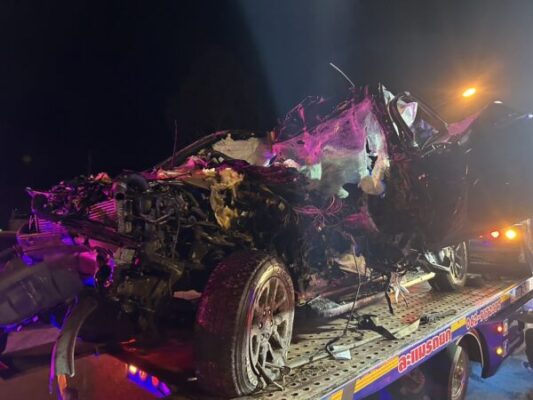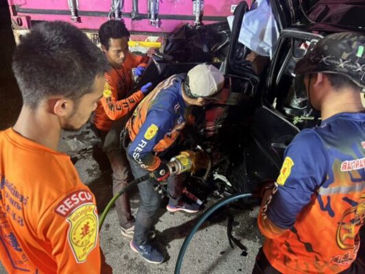 ภายในรถมีผู้เสียชีวิต 3 ศพ ถูกอัดกอปปี้ตัดอยู่หน้ารถ หน่วยกู้ภัยต้องใช้เครื่องตัดถ่างช่วยนานกว่า 20 นาที จึงนำร่างออกมาได้ ศพแรกเป็นคนขับชื่อคือ นายชาตรี ศรีอ่อน อายุ 31 ปี อยู่บ้านเลขที่ 42 หมู่ 6 ตำบลไม้ฝาด อ.สิเกา จ.ตรัง นางสาวปิยะวรรณ บัวบาน อายุ 31 ปี อยู่บ้านเลขที่ 42 หมู่ 6 ตำบลไม้ฝาด อ.สิเกา จ.ตรัง และนางสาวกนกวรรณ ไตรรัตน์ อายุ 24 ปี อยู่บ้านเลขที่ 40/2 หมู่ 5 ตำบลรัษฏา อ.เมือง จ.ภูเก็ต
