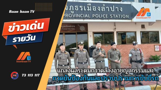 ลำปาง-ตำรวจลำปาง แถลงผลระดมกวาดล้างอาชญากรรมและกวดขันป้องกันและปราบปรามการขับขี่รถโดยไม่คำนึงถึงความปลอดภัยหรือความเดือดร้อนของผู้อื่น