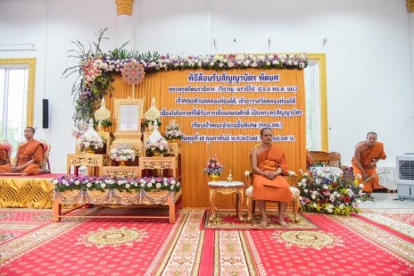 จัดพิธีต้อนรับสัญญาบัตร พัดยศ พระครูสถิตนราธิการ