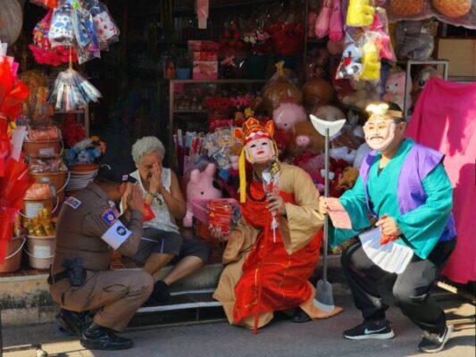จ.พิษณุโลก ผกก. สภ.บางระกำ BangrakamPoliceCare นำทีมตำรวจชุดไซอิ๋วบางระกำ ประกอบด้วย พระถังซัมจั๋ง ซุนหงอคง(เห้งเจีย) ตือโป๊ยก่าย ซัวเจ๋ง และ แป๊ะยิ้ม.ตุ้งแช่!! ออกประชาสัมพันธ์ป้องกันเหตุช่วงเทศกาลตรุษจีน ประจำปี 2567