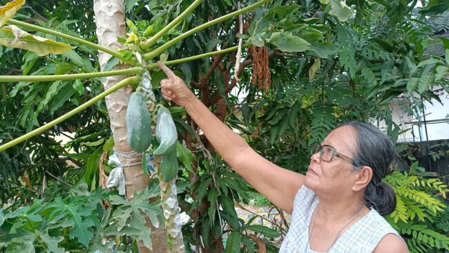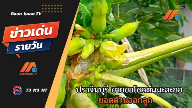ปราจีนบุรี ยายขอโชคต้นมะละกอยอดด้วนออกลูก