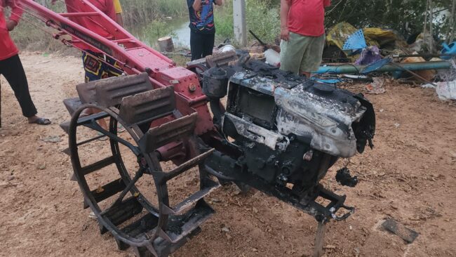 ตรวจสอบเบื้องต้นพบว่าทรัพย์สินที่อยู่ภายในบ้าน อาทิ รถไถนา รถจักรยานยนต์(คันใหม่) ตู้เย็น พัดลม ตู้เสื้อผ้า และเอกสารสำคัญต่างๆ ถูกเพลิงไหม้ได้รับความเสียหายทั้งหมด นำออกมาได้เพียงแค่รถจักรยานยนต์ 1 คัน ส่วนสาเหตุคาดว่าเกิดจากไฟฟ้าลัดวงจร เนื่องจากช่วงเวลาขณะเกิดเหตุไม่มีคนพักอาศัยอยู่ภายในบ้าน