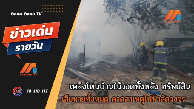 เพลิงโหมบ้านไม้วอดทั้งหลัง ทรัพย์สินเสียหายทั้งหมด คาดสาเหตุไฟฟ้าลัดวงจร