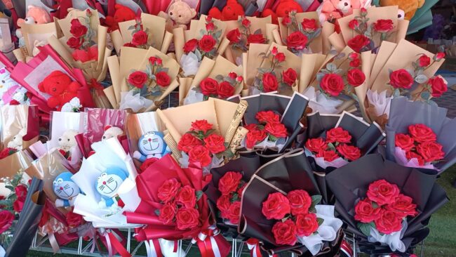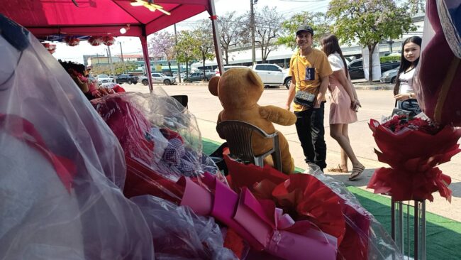 วันที่ 12 กพ.67 ก่อนวันวาเลนไทน์(วันแห่งความรัก 14 กุมภาพันธ์)ร้านขายดอกไม้สดบรรยากาศเริ่มคึกคักทางร้านจัดทำช่อดอกไม้สดและดอกไม้แห้ง ไว้บริการลูกค้าจะให้คู่รักหนุ่มสาวซื้อหาเป็นของขวัญวันวาเลนไทน์ ทางร้านเร่งจัดทำช่อดอกไม้ราคาต่างๆ รวมถึงตุ๊กตาขนาดเล็ก กลาง ใหญ่ ไว้บริการคู่รักหนุ่มสาวอีกด้วย คู่รักหนุ่มสาวต่างทยอยเดินทางมาเลือกซื้อหาช่อดอกไม้ไว้ฝากคนรักในวันแห่งความรักวันที่ 14 เป็นนะยะๆ