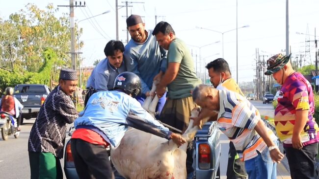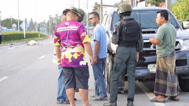 นายไพศาล หะยีดือราอิง ผู้ช่วยผู้ใหญ่บ้าน บอกว่า เหตุการณ์รถชนวัวเกิดบ่อยเหมือนกัน ปีละ 2-3 ครั้ง ปกติ พอรถชนวัว ชาวบ้านก็จะไม่ยอมรับ ส่วนเคสนี้ เป็นวัวปล่อยมันมานานแล้ว ประมาณ 5 ตัว ที่ข้ามมา จะมาทุกวัน พอดีวัวออกไปกินหญ้าแถวเชิงเขา แล้วก็วิ่งมาตัดหน้ารถ