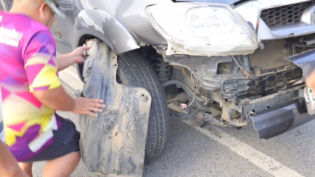 รถกระบะชนวัววิ่งข้ามถนน ไร้เจ้าของ คนขับปลอดภัย ขณะ ผช.ผญบ.ให้นำวัวไปขายซ่อมรถ