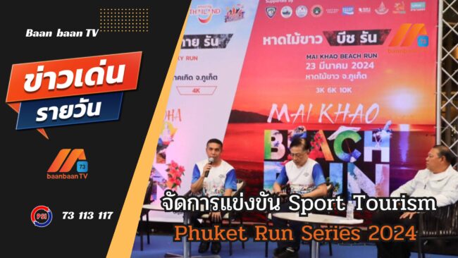 เมื่อวันที่ 13 กุมภาพันธ์นี้ ที่ศูนย์การค้าเซ็นทรัล ภูเก็ต เฟสติวัล นายโสภณ สุวรรณรัตน์ ผู้ว่าราชการจังหวัดภูเก็ต เป็นประธานแถลงข่าวเปิดตัวการแข่งขัน Sport Tourism Phuket Run Series 2024 พร้อมด้วยนางรัชดาภรณ์ โออิน ท่องเที่ยวและกีฬาจังหวัดภูเก็ต หน่วยงาน ราชการองค์กรปกครองท้องถิ่น ที่เกี่ยวข้องเข้าร่วม เพื่อเชิญชวนนักวิ่ง นักท่องเที่ยว และผู้สนใจเข้าร่วมวิ่งบนเส้นทางท้าทาย ผ่าน 2 รายการคือ งานวิ่งภูเก็ต พระใหญ่ สกายรัน ระยะทาง 4 กิโลเมตร กับระดับความสูงที่ท้าทาย 360 เมตร เพื่อชมพระอาทิตย์ขึ้นยามเช้า พร้อมทิวทัศน์รอบเมืองภูเก็ต 360 องศา ที่ฐานองค์พระใหญ่ เขานาคเกิด ในวันอาทิตย์ที่ 17 มีนาคมและงานวิ่งไม้ขาว บีชรัน ซึ่งมีระยะทางวิ่งให้เลือกที่ 3, 6 หรือ 10 กิโลเมตร เพื่อพิสูจน์ความแกร่งร่างกายบนทรายชายหาดไม้ขาว อำเภอถลาง พร้อมบันทึกภาพความทรงจำกับภาพเครื่องบินขึ้นลงบนน่านฟ้ายามเย็นที่สวยงาม ในวันเสาร์ที่ 23 มีนาคมนี้