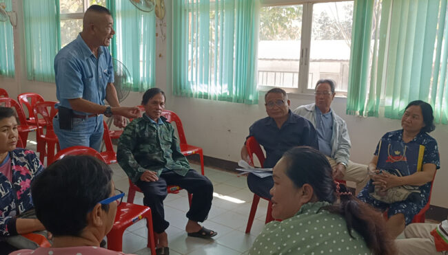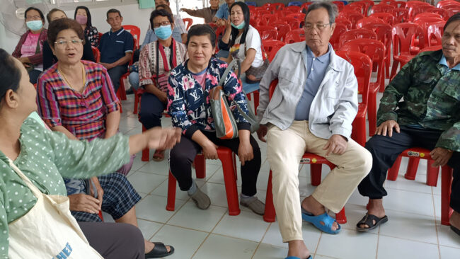 ทางด้านนายลือชัย คำหงษา อดีตผู้ใหญ่บ้านหมู่ที่ 5 บ้านโนนสวนหม่อนและกำนัน ต.บ้านต้อง ซึ่งเป็น 1 ใน 25 กรรมการกู้ยืมเงินในชุดแรกได้ให้สัมภาษณ์กับผู้สื่อข่าว ในฐานะผู้นำหมู่บ้านสมัยนั้นก็ได้ชักชวนลูกบ้านมาร่วมประชุมรับฟังนโยบายการกู้ยืมเงินจาก พอช.ตนก็ได้เป็นกรรมการและผู้กู้รายหนึ่งจำนวนเงิน 3 แสนบาท รวมๆ ทั้ง 3 กลุ่มกู้ไปกว่า 2 ล้านบาท แรกๆ ก็ได้ส่งเงินต้นทั้งดอกเบี้ย แต่ส่งไปบางครั้งก็ได้ใบเสร็จบางครั้งก็ไม่ได้ จึงได้หยุดส่ง 2 ปีผ่านมาได้รับใบแจ้งทวงหนี้เป็นเงินกว่า 6 ล้านบาท ก็ตกใจเหมือนกัน ก็แปลกใจว่าส่งใช้หนี้ไปทำไมเงินต้นแทบไม่ลดลงเลย ที่แปลกใจยิ่งกว่าคือชาวบ้านที่มาลงชื่อเข้าร่วมประชุม 109 คนกลับกลายเป็นคนค้ำประกันเงินกู้ไปได้ พร้อมกับได้รับหนังสือทวงหนี้อีกต่างหาก ส่วนเจ้าหนี้มาพบวันนี้ให้กรรมการทั้ง 25 คนตกลงคุยกันให้ได้ข้อสรุปว่าจะยอมจ่ายหนี้ไหม เงินที่กู้มาซื้อทรัพย์สินเอาไว้ก็ขายมาใช้หนี้ ก็คงจะลดดอกเบี้ยให้ และให้เวลาคุยกันภายใน 1 เดือน ถ้าคุยกันไม่ได้ก็จะถูกฟ้องร้องต่อไป.