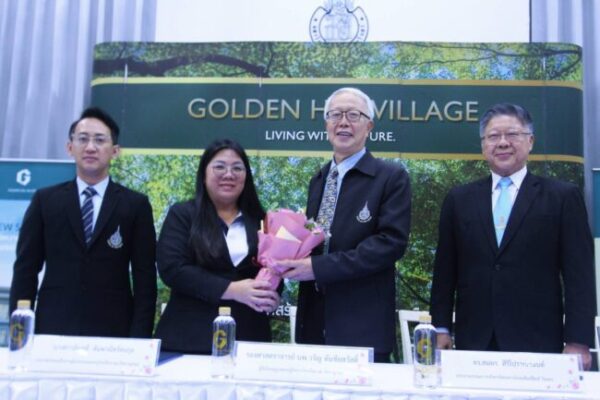 วันนี้จึงเป็นตัวแทนคนหนึ่ง ที่มีนายกมาแล้วหลายๆคน โดยท่านสมพร ก่อตั้งมา ทุกคนก็ได้แนวคิดดีๆที่ท่านตั้งมา เพื่อรักษาความรักระหว่างโรงเรียน ผู้ปกครอง และสุดท้ายความรักจากพวกเราแล้วส่งต่อให้กับเด็กๆ วันนี้โครงการโกลเด้นท์ ฮิลล์ วิลเลจได้นำสิ่งดีมาให้ โดยแบ่งบางส่วนมาให้กับทางสมาคม และทางสมาคมก็จะนำเงินส่วนนี้กลับไปเป็นกิจกรรมที่จะสนับสนุนโรงเรียน และสุดท้ายกลับมาที่ลูก มอ.ว ของเรา จึงอยากฝากให้พิจารณาว่าโครงการนี้เป็นบ้านที่มีคุณภาพ และเป็นสังคมที่ดี อีกทั้งยังคิดเรื่องการรับส่งนักเรียนให้กับคุณพ่อคุณแม่ ดังนั้นลูกๆที่ส่งมาเรียนที่นี่ถ้าท่านอยากจะหาสังคมดีๆ โครงการโกลเด้นท์ ฮิล วิลเลจสามารถตอบโจทย์เพราะเป็นสังคมที่มีคุณภาพ และทางสมาคมได้ไปดูโครงการมาแล้วถือเป็นโครงการที่ดี โดยคุณพ่อคุณแม่ไม่ต้องเป็นห่วง จึงขอฝากโครงการนี้เป็นตัวเลือกถ้าหากจะหาบ้านที่ดีให้กับลูกที่อยู่ใกล้โรงเรียนและมีสังคมที่ดี