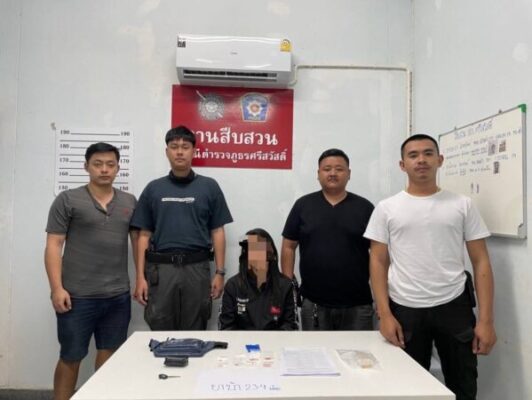 เมื่อวันที่ 13 กุมภาพันธ์ 2567 เวลาประมาณ 07.00 น. 2.นางสาวกัน (ขอสงวนนามสกุล) ข้อหา จำหน่ายยาเสพติดให้โทษประเภท 1 (ยาบ้า) โดยการมีไว้เพื่อจำหน่าย โดยเป็นการกระทำเพื่อ จำหน่าย เสพยาเสพติดให้โทษประเภทที่ 1 (ยาบ้า) โดยฝ่าฝืนกฎหมาย พร้อมด้วยของกลาง 1.ยาเสพติดให้โทษประเภท 1 เมทแอมเฟตามีน(ยาบ้า) ลักษณะเป็นเม็ดกลมแบนสีส้ม ใส่ไว้ในถุงพลาสติกชนิดปากถุงกดปิด-ดึงเปิด สีน้ำเงิน ขนาด 6×8 ซม. จำนวน 198 เม็ด และยาเสพติดให้โทษประเภท 1 เมทแอมเฟตามีน (ยาบ้า) ลักษณะเป็นเม็ดกลมแบนสีเขียว จำนวน 2 เม็ด รวมยาบ้าจำนวน 200 เม็ด 2.ยาเสพติดให้โทษประเภท 1 เมทแอมเฟตามีน(ยาบ้า) ลักษณะเป็นเม็ดกลมแบนสีส้ม ใส่ไว้ในถุงพลาสติกชนิดปากถุง กดปิด-ดึงเปิด ขนาด 4×6 ซม. จำนวน 10 เม็ด 3.ยาเสพติดให้โทษประเภท 1 เมทแอมเฟตามีน(ยาบ้า) ลักษณะเป็นเม็ดกลมแบนสีส้ม ใส่ไว้ในถุงพลาสติกชนิดปากถุง กดปิด-ดึงเปิด ขนาด 4×6 ซม. จำนวน 10 เม็ด 4.ยาเสพติดให้โทษประเภท 1 เมทแอมเฟตามีน (ยาบ้า) ลักษณะเป็นเม็ดกลมแบนสีส้ม ใส่ไว้ในถุงพลาสติกชนิดปากถุง กดปิด-ดึงเปิด ขนาด 4×6 ซม. จำนวน 5 เม็ด 5.ยาเสพติดให้โทษประเภท 1 เมทแอมเฟตามีน(ยาบ้า) ลักษณะเป็นเม็ดกลมแบนสีส้ม ใส่ไว้ในถุงพลาสติกชนิดปากถุงกดปิด-ดึงเปิด ขนาด 4×6 ซม. จำนวน 3 เม็ด 6.ยาเสพติดให้โทษประเภท 1 เมทแอมเฟตามีน(ยาบ้า) ลักษณะเป็นเม็ดกลมแบนสีส้ม ใส่ไว้ในถุงพลาสติกชนิดปากถุง กดปิด-ดึงเปิด ขนาด 4×6 ซม. จำนวน 2 เม็ด 7.ยาเสพติดให้โทษประเภท 1 เมทแอมเฟตามีน(ยาบ้า) ลักษณะเป็นเม็ดกลมแบนสีส้ม ใส่ไว้ในถุงพลาสติกชนิดปากถุงกดปิด-ดึงเปิด ขนาด 4×6 ซม. จำนวน 2 เม็ด 8.ยาเสพติดให้โทษประเภท 1 เมทแอมเฟตามีน (ยาบ้า) ลักษณะเป็นเม็ดกลมแบนสีส้ม ใส่ไว้ในถุงพลาสติกชนิดปากถุง กดปิด-ดึงเปิด ขนาด 4×6 ซม. จำนวน 1 เม็ด 9.ยาเสพติดให้โทษประเภท 1 เมทแอมเฟตามีน(ยาบ้า) ลักษณะเป็นเม็ดกลมแบนสีส้ม ใส่ไว้ในถุงพลาสติกชนิดปากถุงกดปิด – ดึงเปิด ขนาด 4×6 ซม. จำนวน 1 เม็ด รวมของกลางยาบ้าทั้งหมด จำนวน 234 เม็ด 10.กระเป๋าสตางค์แบบหนังสีดำ จำนวน 1 ใบ 11.กระเป๋าสะพายข้างแบบหนังสีน้ำเงิน จำนวน 1 ใบ 12.โทรศัพท์มือถือ ยี่ห้อ oppo สีดำ จำนวน 1 เครื่อง สถานที่เกิดเหตุ หมู่ 2 ต.หนองเป็ด อ.ศรีสวัสดิ์ จว.กาญจนบุรี