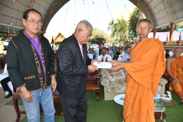 ในโอกาสนี้ พระครูอรุณปุญโญภาส ประธานชุมชนคุณธรรมวัดสำโรงเกียรติ และเจ้าอาวาสวัดสำโรงเกียรติ ได้มอบเงินสดจำนวน 20,000 บาท ให้แก่นายทิวา รุ้งแก้ว นายกพุทธสมาคมจังหวัดศรีสะเกษ เพื่อนำไปสนับสนุนโครงการโรงเรียน/หมู่บ้านศีล 5 ตามรอยพ่ออย่างพอเพียง จังหวัดศรีสะเกษ ด้วย