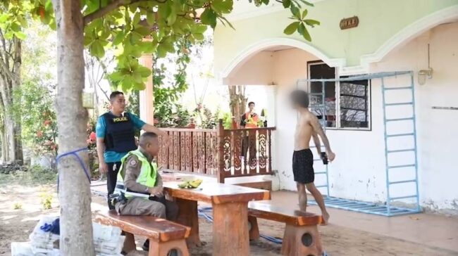 วันที่ 17 ก.พ. 67 พ.ต.อ วิศิษฎ์ บัวสง่าวงค์ ผกก.สภ.เฉลิมพระเกียรติ อ.เฉลิมพระเกียรติ จ.บุรีรัมย์ รับแจ้งมีคนคลุ้มคลั่งอยู่ในบ้าน เกรงว่าเด็กและคนชราที่อยู่ในบ้านจะได้รับอันตราย จึงสั่งการให้ชุดสืบสวน ลงพื้นที่เข้าตรวจสอบ
