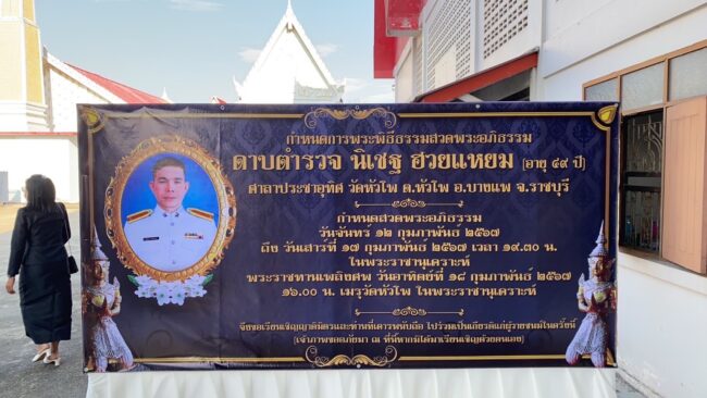 สำหรับดาบตำรวจรายนี้เสียชีวิตจากกรณี นายพรชัย ชูสุทธิสกุล อายุ 44 ปี ขับรถเก๋งโตโยต้าวีออส สีขาว ทะเบียน กง 126 ราชบุรี พุ่งชน ขณะยืนอำนวยความสะดวกด้านการจราจรบริเวณจุดกลับรถ ถนนสมุทรสงครามอัมพวา หน้าโรงบรรจุแก๊สหุงต้ม ต.บ้างช้าง อ.อัมพวา จ.สมุทรสงคราม ขาเข้าแม่กลอง