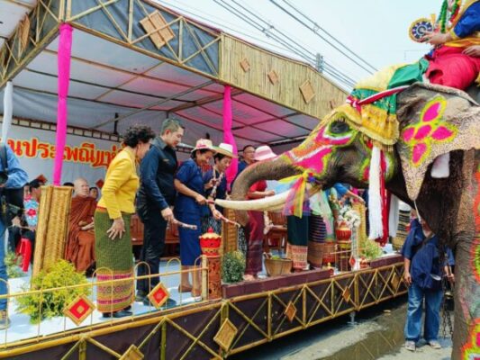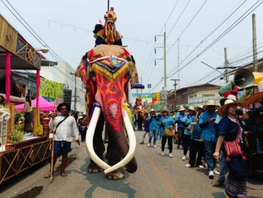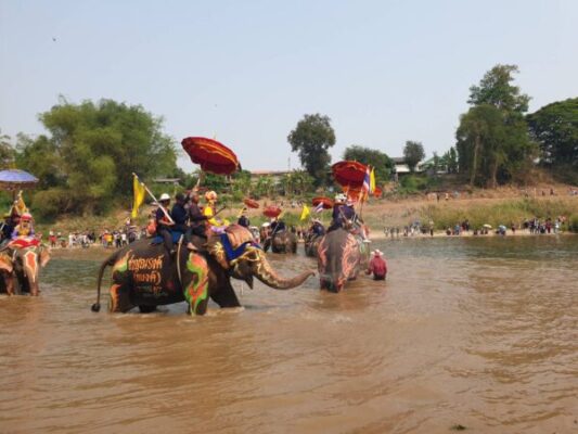เริ่มแล้ว สงกรานต์สุโขทัย ปิดเมืองแห่ช้างบวชนาคสู้อากาศร้อนระอุ