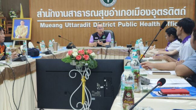 เมื่อเวลา09.00 น.ของวันที่ 9 เมษายน 2567 ที่ ห้องประชุมท่าเหนือ สำนักงานสาธารณสุขอำเภอเมืองอุตรดิตถ์ จังหวัดอุตรดิตถ์ นายแพทย์อี๊ดยังวัน ยงยวนนายแพทย์สาธารณสุขจังหวัดอุตรดิตถ์