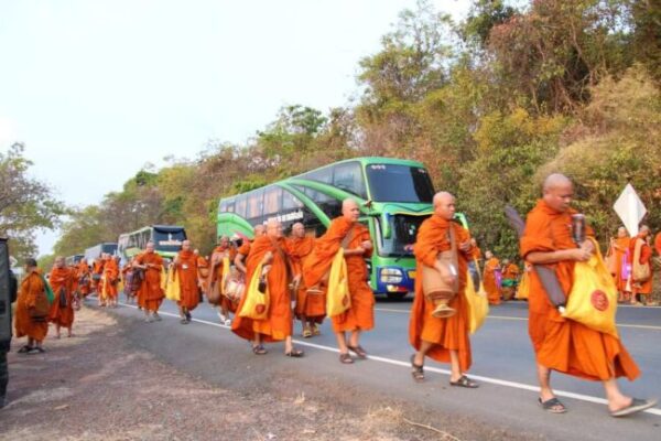โดยได้นำพระสงฆ์ สามเณร ตามโครงการดังกล่าวออกธุดงค์ปักกรด แสวงบุญ ไปตามพื้นที่ต่างๆ เริ่มจากวัดเทพสรธรรมาราม (บาย ตึ๊ก เจีย) จ.ปทุมธานี มุ่งหน้าสู่วัดไพรพัฒนา อ.ภูสิงห์ จ.ศรีสะเกษ เพื่อร่วมพิธีเปลี่ยนผ้าไตรสรีระสังขารหลวงปู่สรวง จากนั้นเดินทางไปที่วัดไตรราษฎร์สามัคคี อ.ขุนหาญ จ.ศรีสะเกษ เพื่อร่วมสวดมนต์ทำวัตรเย็น เสร็จแล้วได้ออกธุดงค์ต่อไปยัง จ.อุบลราชธานี จ.นครพนม และ จ.ขอนแก่น ก่อนที่จะเดินทางกลับที่ จ.ปทุมธานี ในวันที่ 16 เม.ย.นี้