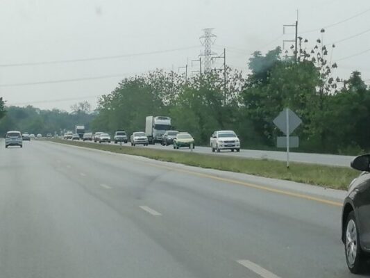 ที่ถนนสายเอเชีย ขาขึ้น ในขณะ นี้มี การจราจรที่คับคั่งเนื่องจากมีผู้ใช้รถใช้ถนนจาก กรุงเทพฯเดินทางกลับภูมิลำเนา ไม่ว่าจะเป็นรถปิคอัพรถเก๋ง เป็นขบวนติดต่อกันยาว ต่อเนื่องโดยไม่ขาดสาย