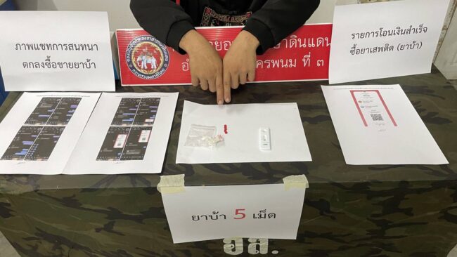วันที่ 18 เม.ย.67 ผู้สื่อข่าวรายงานว่า เมื่อคืนวัน ที่ 17 เมษายน 2567 เวลา 21.35 น. ภายใต้การอำนวยการของนายสมศักดิ์ บุญจันทร์ นายอำเภอเมืองนครพนม นายประชุมศิลป์ พิทักษ์ ปลัดอำเภอหัวหน้ากลุ่มงานบริหารงานปกครอง สั่งการให้ นายจักรพล เที่ยงภักดิ์ และ นายชัยเกียรติ ทุมรัตน์ ปลัดอำเภอกลุ่มงานความมั่นคง นำกำลัง กองร้อย อส.อ.เมืองนครพนม ที่ 3 ร่วมกันดำเนินการจับกุมผู้กระทำความผิดตาม พ.ร.บ.ยาเสพติด (ยาบ้า) กล่าวคือ เมื่อวันที่ 17 เมษายน 2567 เวลาประมาณ 18.00 น. นายจักรพล เที่ยงภักดิ์ ปลัดอำเภอเมืองนครพนม ได้รับแจ้งจากสายลับ (ขอปิดนาม) ว่านายหนุ่ม (นามสมมติ) ราษฎร บ้านน้อยใต้ ต.หนองญาติ อ.เมืองนครพนม จ.นครพนม มีพฤติการณ์เสพยาเสพติดและจำหน่ายยาเสพติด (ยาบ้า) ให้กับกลุ่มผู้เสพยาเสพติด (ยาบ้า) ในพื้นที่ตำบลหนองญาติ และ พื้นที่ตำบลใกล้เคียง ซึ่งนายหนุ่ม มักจะจำหน่ายยาเสพติด (ยาบ้า) และนัดส่งมอบยาเสพติด (ยาบ้า) อยู่ที่บริเวณหน้าที่ว่าการอำเภอเมืองนครพนม บ.นาจอก ม.5 ต.หนองญาติ อ.เมืองนครพนม จว.นครพนม อยู่เป็นประจำ จึงได้รายงานให้ผู้บังคับบัญชาทราบและประสานหน่วยงานที่เกี่ยวข้อง ร่วมกันวางแผนเข้าทำการติดต่อล่อซื้อจับกุม
