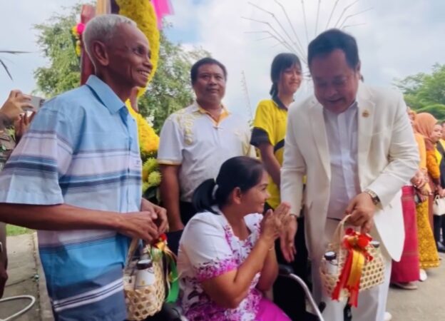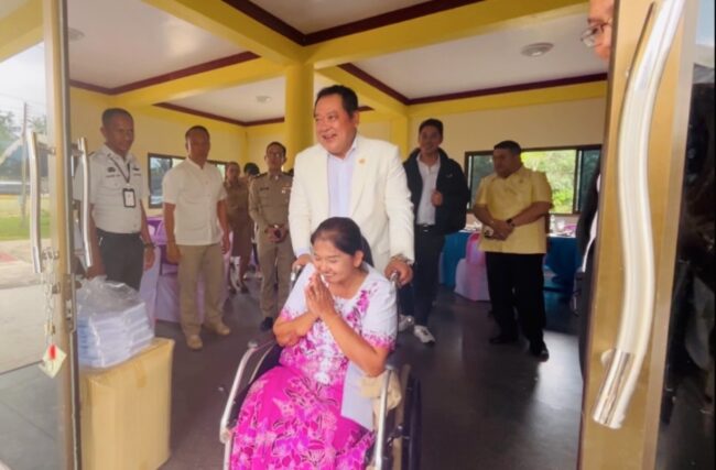 วันนี้ในโอกาสที่ พ.ต.อ.ทวี สอดส่อง รมว.ยุติธรรม ลงพื้นที่จังหวัดนราธิวาสเพื่อร่วมงานพิธีฉลองอายุวัฒนมงคล ครบ 87 ปี 66 พรรษา พระธรรมวัชรจริยาจารย์ ที่ปรึกษาเจ้าคณะภาค 18 และเป็นเจ้าอาวาสวัดประชุมชลธารา ต.สุไหงปาดี อ.สุไหงปาดี จ.นราธิวาส นางประทุม นักทอง อายุ 57 ปี หนึ่งเหยื่อจากเหตุการณ์ความไม่สงบในจังหวัดชายแดนภาคใต้ ได้รับบาดเจ็บสาหัส ขาขาดทั้งสองข้าง