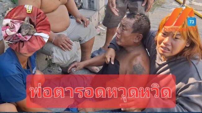 เพลิงไหม้บ้านร้าง ลูกเขยวิ่งเข้าไปช่วยพ่อตาที่หลับอยู่ที่ชั้น 2 รอดหวุดหวิด เจ้าหน้าที่ต้องปีนบันไดช่วยน้องแมวและน้องหมาก่อนถูกไฟคลอก