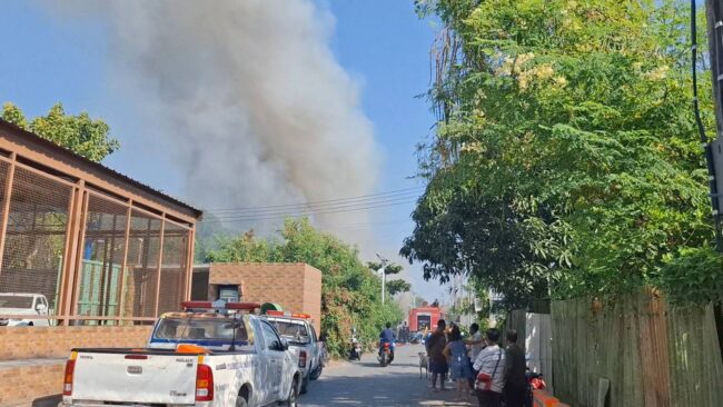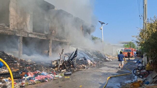 เมื่อช่วงสายที่ผ่านมา เวลา 10.20 น วันที่ 9 มกราคม 2568 เจ้าหน้าที่ตำรวจ สภ.สำโรงเหนือ จังหวัดสมุทรปราการ ได้รับแจ้งเพลิงไหม้ตึกร้างหลายคูหาภายในซอยศรีด่าน 3/5 ตำบลสำโรงเหนือ อำเภอเมือง จังหวัดสมุทรปราการ หลังรับแจ้งจึงประสานรถดับเพลิงจากเทศบาลตำบลด่านสำโรง และเทศบาลใกล้เคียงรวม 10 คัน พร้อมเจ้าหน้าที่มูลนิธป่อเต็กตึ๊ง เดินทางไปตรวจสอบ