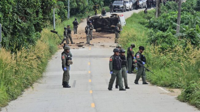 ออกหมายจับ 2 ตัวเอ้วางบึ้มแล้วยิงซ้ำ 2 พ่อลูก ตชด. ขนหัวลุกทั้งโรงพักเมื่อซากรถครูใหญ่มีหมาเห่าเสียงแตรดังกลางดึก