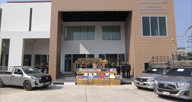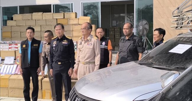 นครนายก – แถลงข่าวจับบุหรี่มิชอบด้วยกฏหมายจำนวน 137.399 ซองมูลค่า 12.365.910 บาท