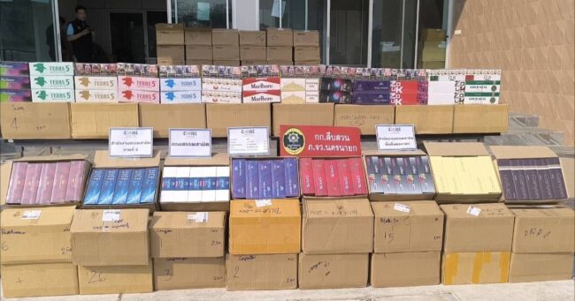1.บุหรี่ ยี่ห้อต่างๆ ทั้งของไทยและต่างประเทศ มียังไม่ผ่านการเสียภาษีสรรพสามิต รวมทั้งหมดจำนวน 137,399 ซอง* มูลค่า 12.365.910 บาท 2.รถยนต์กะบะยี่ห้อ โตโยต้า รุ่นวีโว่ ตอนเดียว สีบอร์น-เทา หมายเลขทะเบียน 2ตจ 4422 กรุงเทพมหานคร